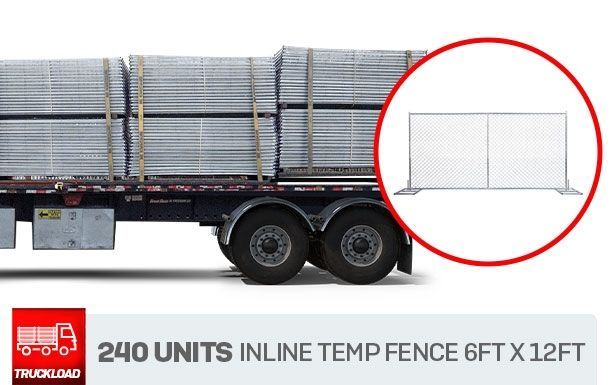 This truckload offer comprising inline chain-link temporary fence panels and accessories is designed for high-volume construction sites and rental operations. This bundle includes all required components to deploy a full temporary chain-link fence system with consistent alignment, stability, and fast setup.