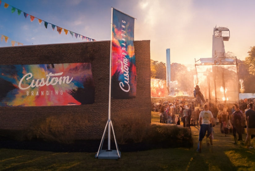 Each giant flag is printed on lightweight polyester mesh fabric designed to withstand outdoor conditions. The fabric is crease resistant and engineered to display logos, text, and graphics in sharp, vibrant detail. This makes the flag ideal for continuous use at recurring events or long-term promotional setups.
